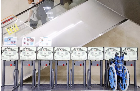 昨日上午,在市人民医院南区一楼大厅,此处设置的共享轮椅电子桩空空如也,轮椅已被全部借走。在其余的两处站点,也仅剩下两部共享轮椅尚未借出。