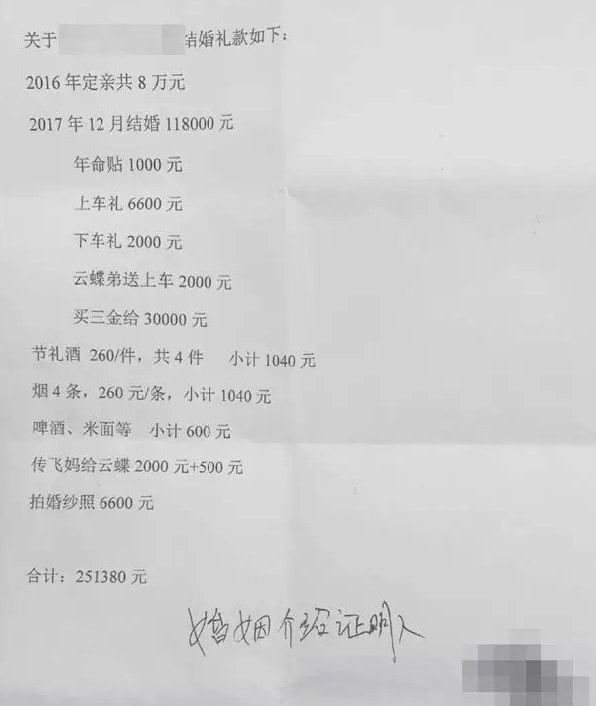 苦恼之下,小安在今年6月7日以小蝶不履行妻子义务为由起诉离婚,并索要累计达25万多元的彩礼。