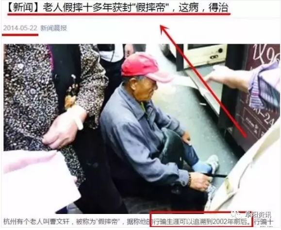 假摔帝又来了!今天,阜阳街头又出现了假摔帝曹文轩的身影老人名叫曹文轩,1933年出生今年已经85岁了,老家在安徽临泉县其实早在2004年就有媒体报道他在杭州假摔近2年到不同的地方都是寻找战友、子女不孝