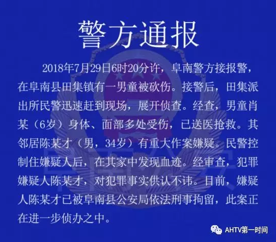 7月29日天很多阜阳人和阜南人的微信群里发现一条信息说是有个6岁男孩被砍伤并且配有血腥图片还有的市民说是小男孩被人贩子砍伤在朋友圈发布视频这是真的假的?谁对一个六岁的孩子下手?阜南县公安局及时发布了警